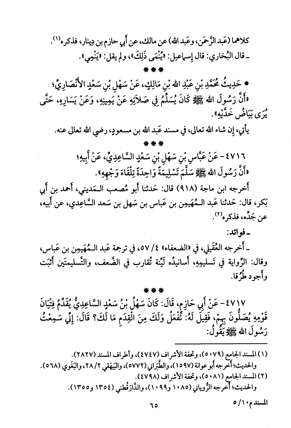 - قلنا: إِسناده ضعيفٌ؛ عبد المهيمن بن عباس بن سهل بن سعد السَّاعِدي، الأَنصاري المدني, ليس بثقة. انظر فوائد الحديث رقم (٤٧٠٧).