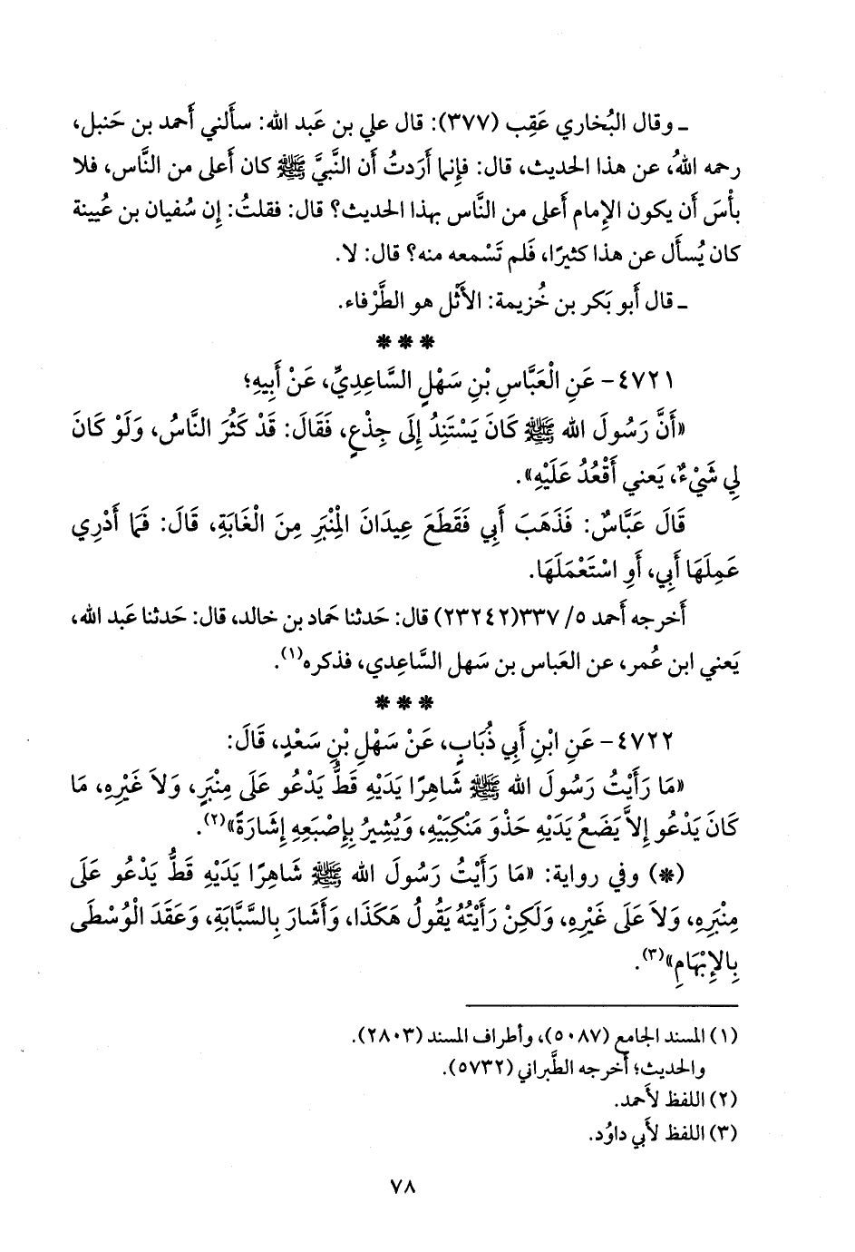 - وفي رواية: «ما رأيت رسول الله صَلى الله عَليه وسَلم شاهرا يديه قط يدعو على منبره، ولا على غيره، ولكن رأيته يقول هكذا، وأشار بالسبابة، وعقد الوسطى بالإبهام» (¬٢).