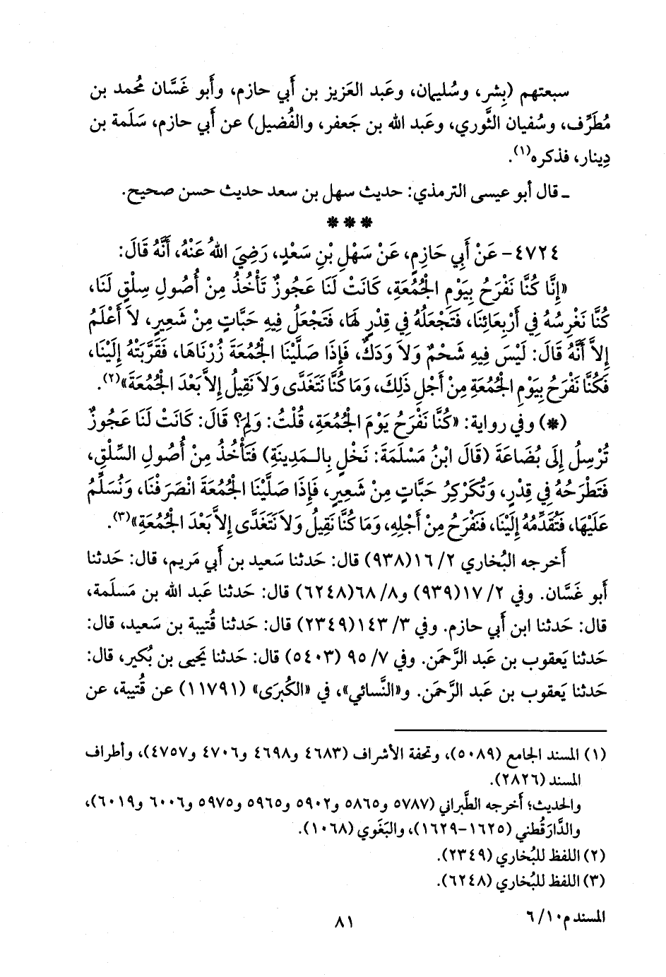 ثلاثتهم (أَبو غسان، محمد بن مطرف، وعبد العزيز بن أبي حازم، ويعقوب بن عبد الرَّحمَن) عن أبي حازم سلمة بن دينار، فذكره (¬١).