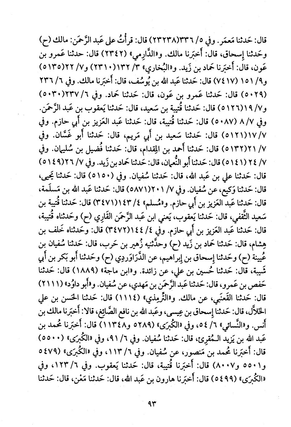 وفي ٦/ ١٩٢ (٥٠٣٠) و ٧/ ١٤ (٥١٢٦) قال: حدثنا قتيبة بن سعيد، قال: حدثنا يعقوب بن عبد الرَّحمَن. وفي ٧/ ٦ (٥٠٨٧) قال: حدثنا قتيبة، قال: حدثنا عبد العزيز بن أبي حازم. وفي ٧/ ١٣ (٥١٢١) قال: حدثنا سعيد بن أبي مريم، قال: حدثنا أَبو غسان. وفي ٧/ ١٧ (٥١٣٢) قال: حدثنا أحمد بن المقدام، قال: حدثنا فضيل بن سليمان. وفي ٧/ ١٨ (٥١٤١) قال: حدثنا أَبو النعمان، قال: حدثنا حماد بن زيد. وفي ٧/ ٢٠ (٥١٤٩) قال: حدثنا علي بن عبد الله، قال: حدثنا سفيان. وفي (٥١٥٠) قال: حدثنا يحيى، قال: حدثنا وكيع، عن سفيان. وفي ٧/ ١٥٦ (٥٨٧١) قال: حدثنا عبد الله بن مَسلَمة، قال: حدثنا عبد العزيز بن أبي حازم. و «مسلم» ٤/ ١٤٣ (٣٤٧١) قال: حدثنا قتيبة بن سعيد الثقفي، قال: حدثنا يعقوب، يعني ابن عبد الرَّحمَن القاري (ح) وحدثناه قتيبة، قال: حدثنا عبد العزيز بن أبي حازم. وفي ٤/ ١٤٤ (٣٤٧٢) قال: وحدثناه خلف بن هشام، قال: حدثنا حماد بن زيد (ح) وحدثنيه زهير بن حرب، قال: حدثنا سفيان بن عُيينة (ح) وحدثنا إسحاق بن إبراهيم، عن الدراوَرْدي (ح) وحدثنا أَبو بكر بن أبي شيبة، قال: حدثنا حسين بن علي، عن زائدة. و «ابن ماجة» (١٨٨٩) قال: حدثنا حفص بن عَمرو، قال: حدثنا عبد الرَّحمَن بن مهدي، عن سفيان. و «أَبو داود» (٢١١١) قال: حدثنا القَعنَبي، عن مالك. و «التِّرمِذي» (١١١٤) قال: حدثنا الحسن بن علي الخَلَّال، قال: حدثنا إسحاق بن عيسى، وعبد الله بن نافع الصائغ، قالا: أخبرنا مالك بن أنس. و «النَّسَائي» ٦/ ٥٤، وفي «الكبرى» (٥٢٨٩ و ١١٣٤٨) قال: أخبرنا محمد بن عبد الله بن يزيد المُقرِئ، قال: حدثنا سفيان.