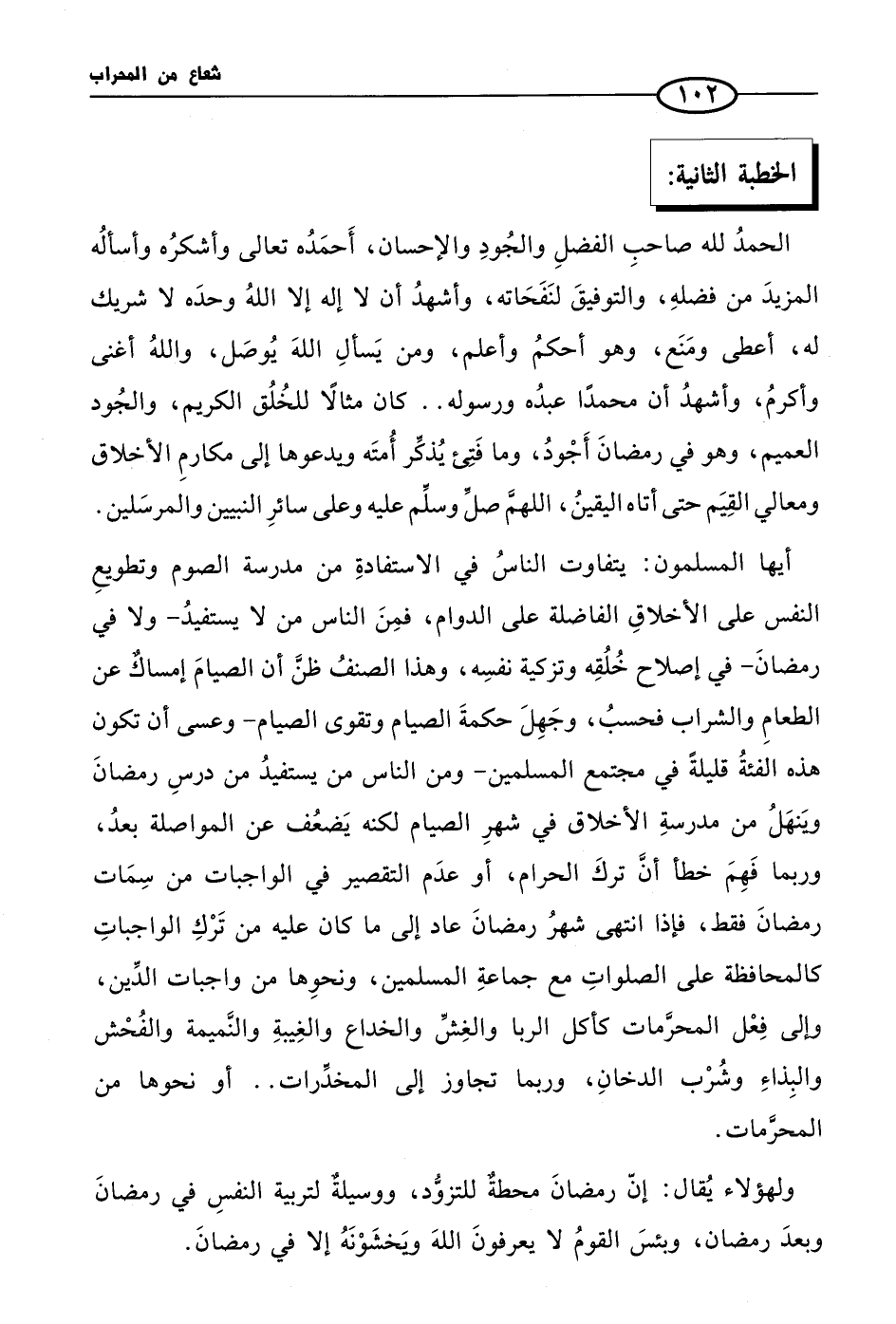 الحمدُ لله صاحبِ الفضلِ والجُودِ والإحسان، أَحمَدُه تعالى وأشكرُه وأسألُه المزيدَ من فضلهِ، والتوفيقَ لنَفَحَاته، وأشهدُ أن لا إله إلا اللهُ وحدَه لا شريك له، أعطى ومَنَع، وهو أحكمُ وأعلم، ومن يَسألِ اللهَ يُوصَل، واللهُ أغنى أكرمُ، وأشهدُ أن محمدًا عبدُه ورسوله .. كان مثالًا للخُلُق الكريم، والجُود العميم، وهو في رمضانَ أَجْودُ، وما فَتِئ يُذكِّر أُمتَه ويدعوها إلى مكارمِ الأخلاق ومعالي القِيَم حتى أتاه اليقينُ، اللهمَّ صلِّ وسلِّم عليه وعلى سائرِ النبيين والمرسَلين.