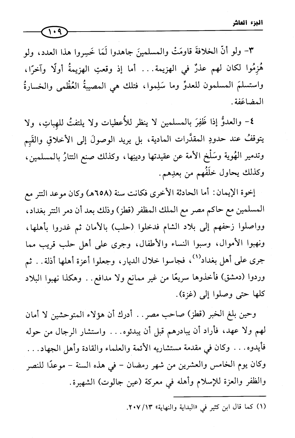 3 - ولو أنّ الخلافةَ قاومَتْ والمسلمينَ جاهدوا لَمَا خَسِروا هذا العدد، ولو هُزِمُوا لكان لهم عذرٌ في الهزيمة ... أما إذ وقعتِ الهزيمةُ أولًا وآخرًا، واستسلمَ المسلمون للعدوِّ وما سَلِموا، فتلك هي المصيبةُ العُظْمى والخسارةُ المضاعَفة.