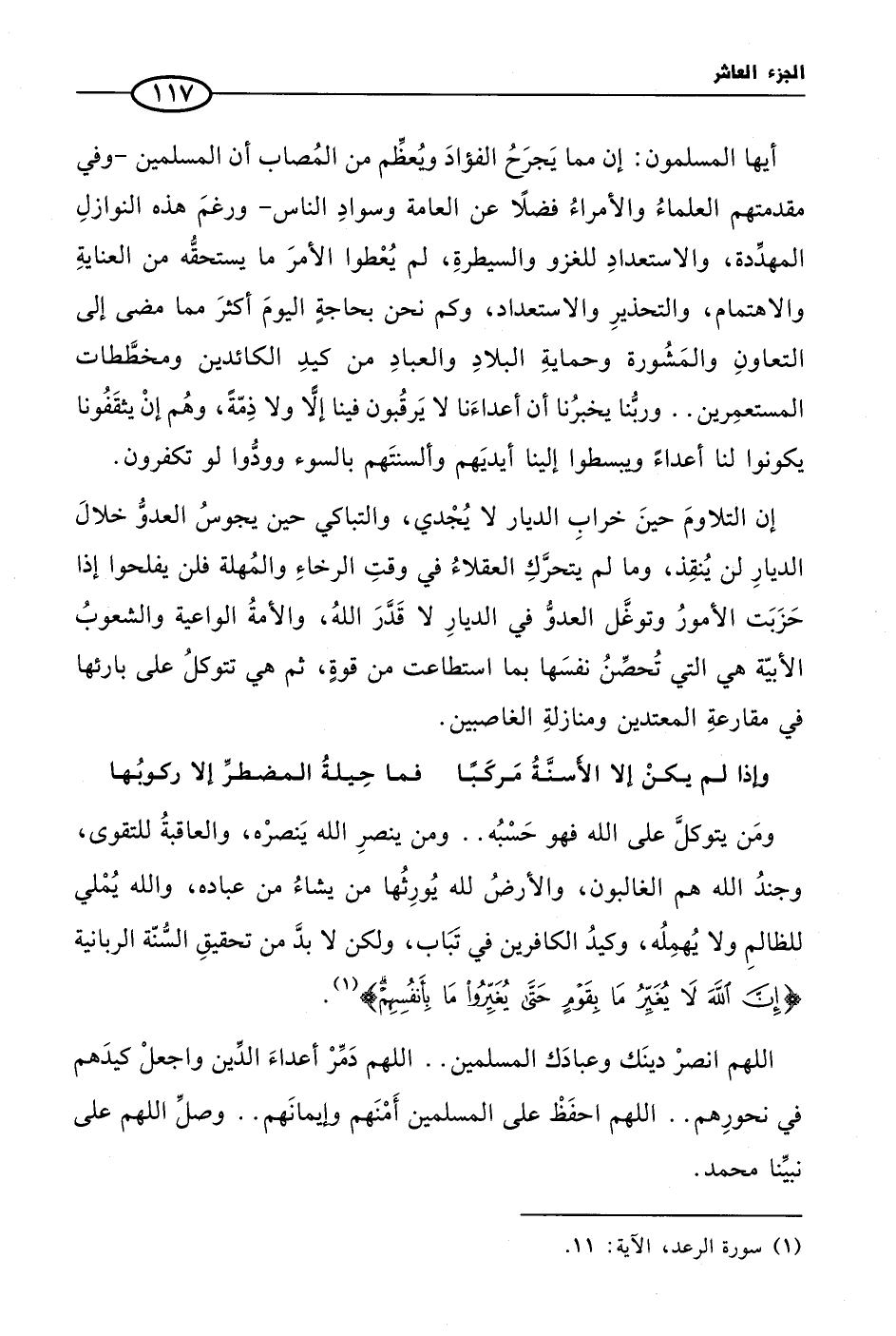 اللهم انصرْ دينَك وعبادَك المسلمين .. اللهم دَمِّرْ أعداءَ الدِّين واجعلْ كيدَهم في نحورِهم .. اللهم احفَظْ على المسلمين أَمْنَهم وإيمانَهم .. وصلِّ اللهم على نبيِّنا محمد.
