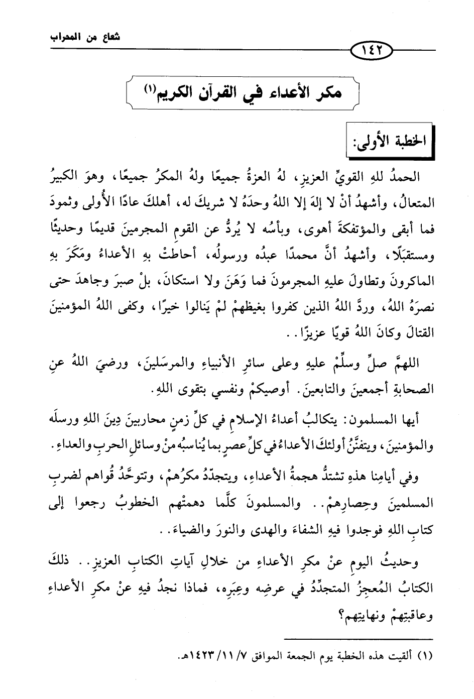(¬1) ألقيت هذه المحاضرة يوم الجمعة الموافق 7/ 11/ 1423 هـ.