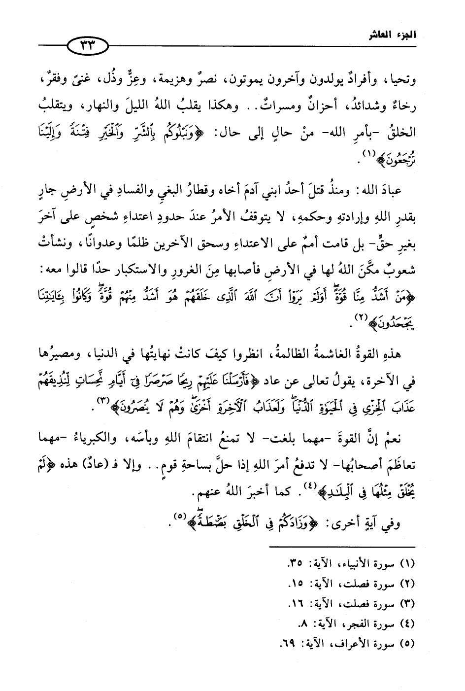نعمْ إنَّ القوةَ- مهما بلغت- لا تمنعُ انتقامَ اللهِ وبأسَه، والكبرياءُ- مهما تعاظَمَ أصحابُها- لا تدفعُ أمرَ اللهِ إذا حلَّ بساحةِ قومٍ .. وإلا فـ (عادٌ) هذه {لَمْ يُخْلَقْ مِثْلُهَا فِي الْبِلادِ} (¬4). كما أخبرَ اللهُ عنهم.