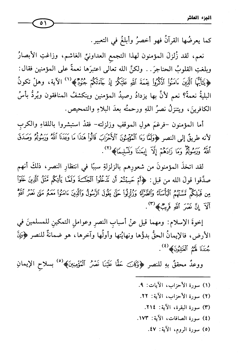 ووعدٌ محققٌ بهِ للنصر {وَكَانَ حَقًّا عَلَيْنَا نَصْرُ الْمُؤْمِنِينَ} (¬5) بسلاحِ الإيمانِ