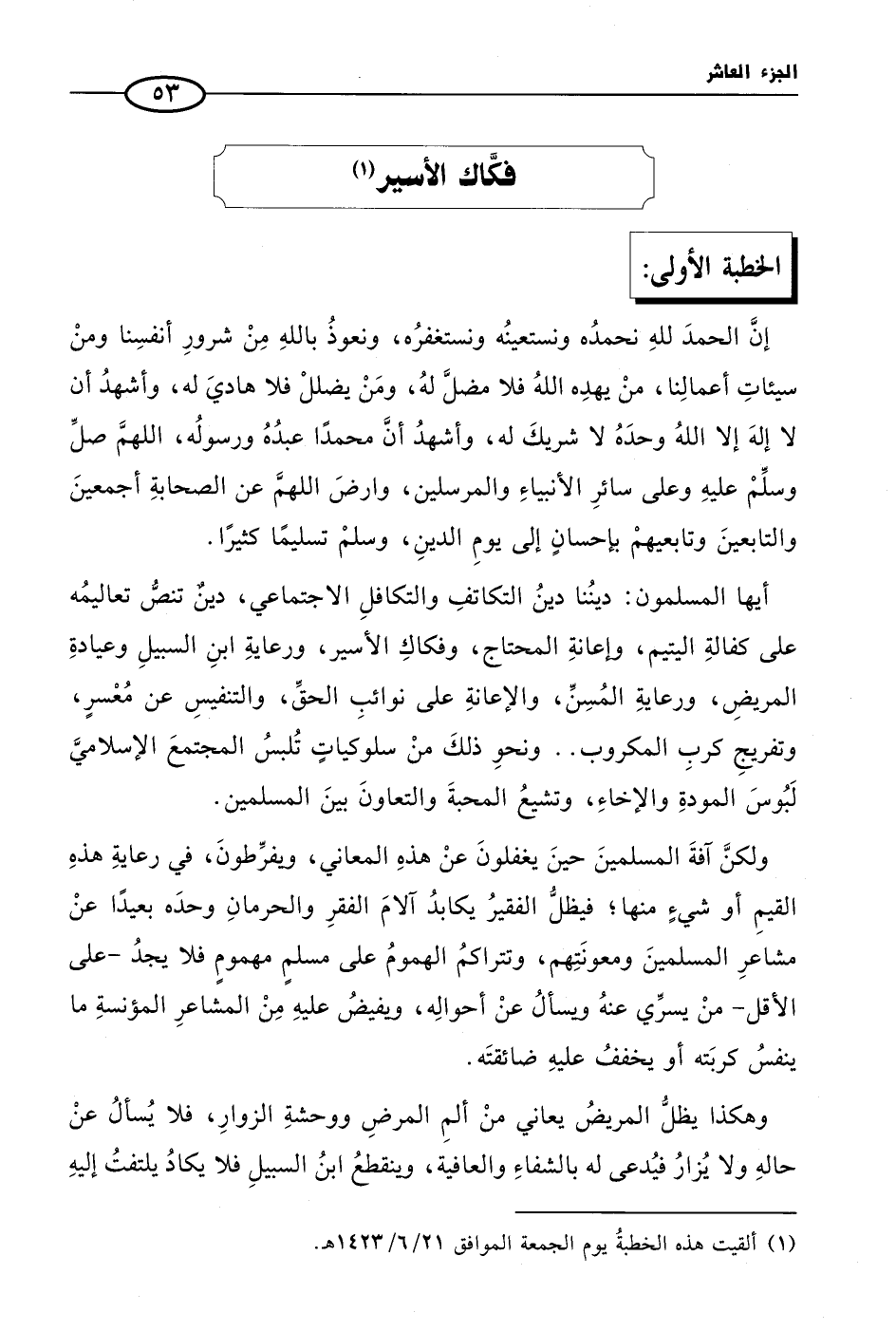 (¬1) ألقيت هذهالخطبةُ يوم الجمعة الموافق 21/ 6/ 1423 هـ.