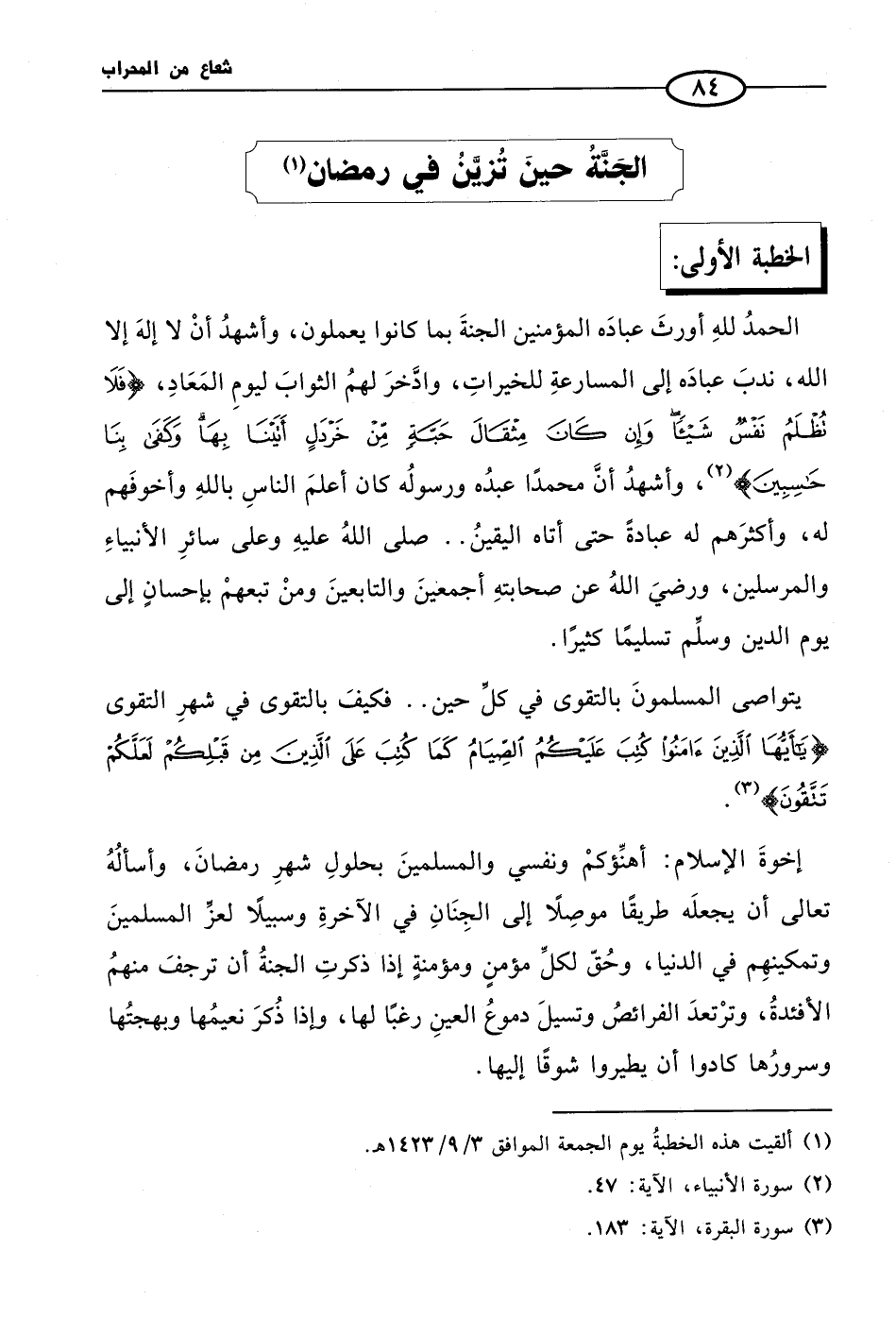 (¬1) ألقيت هذهالخطبةُ يوم الجمعة الموافق 3/ 9/ 1423 هـ.