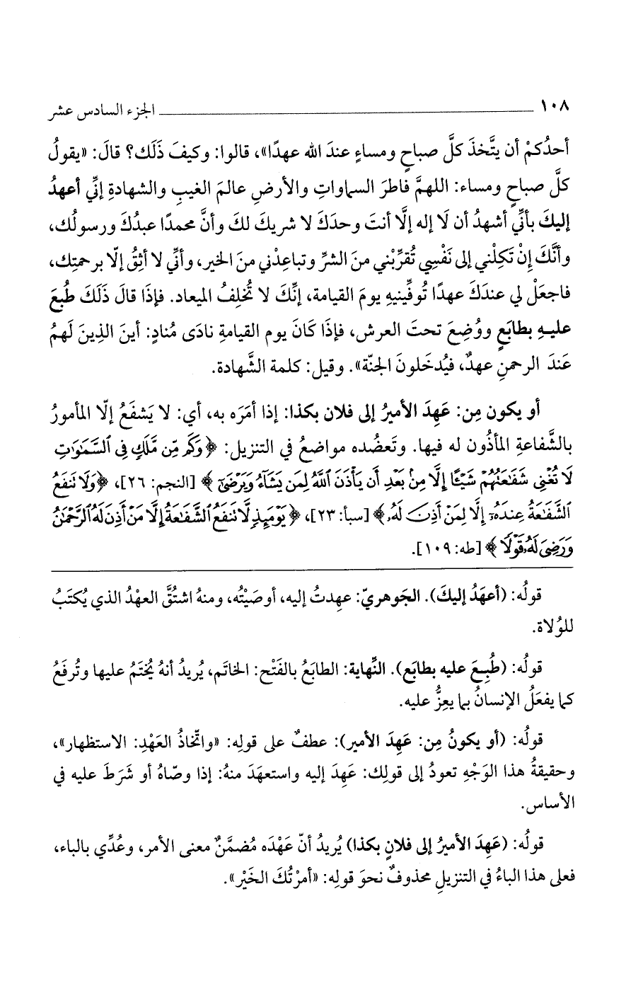 قوله: (أعهد إليك). الجوهري: عهدتُ إليه، أوصيتُه، ومنه اشتق العهدُ الذي يكتبُ للولاة.