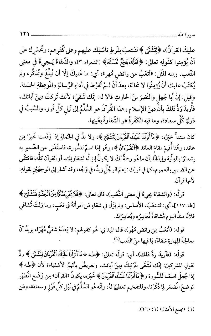 قوله: (فأريد رد ذلك)، أي: قوله تعالى: (طه * مَا أَنْزَلْنَا عَلَيْكَ الْقُرْآنَ لِتَشْقَى) رد لقول المشركين: إنك تشقى بتركك دين آبائك، وتعريضٌ بأنهم الأشقياء؛ لأن (طه) إذا جُعل اسماً للسورة و (مَا أَنْزَلْنَا عَلَيْكَ الْقُرْآنَ) خبره، يكون "القرآن" من وضع المُظهر موضع المضمر لما ذكرنا، وللتفخيم تعظيماً له، وأنه هو السُّلمُ في نيل كل فوزٍ وسعادة، ومن