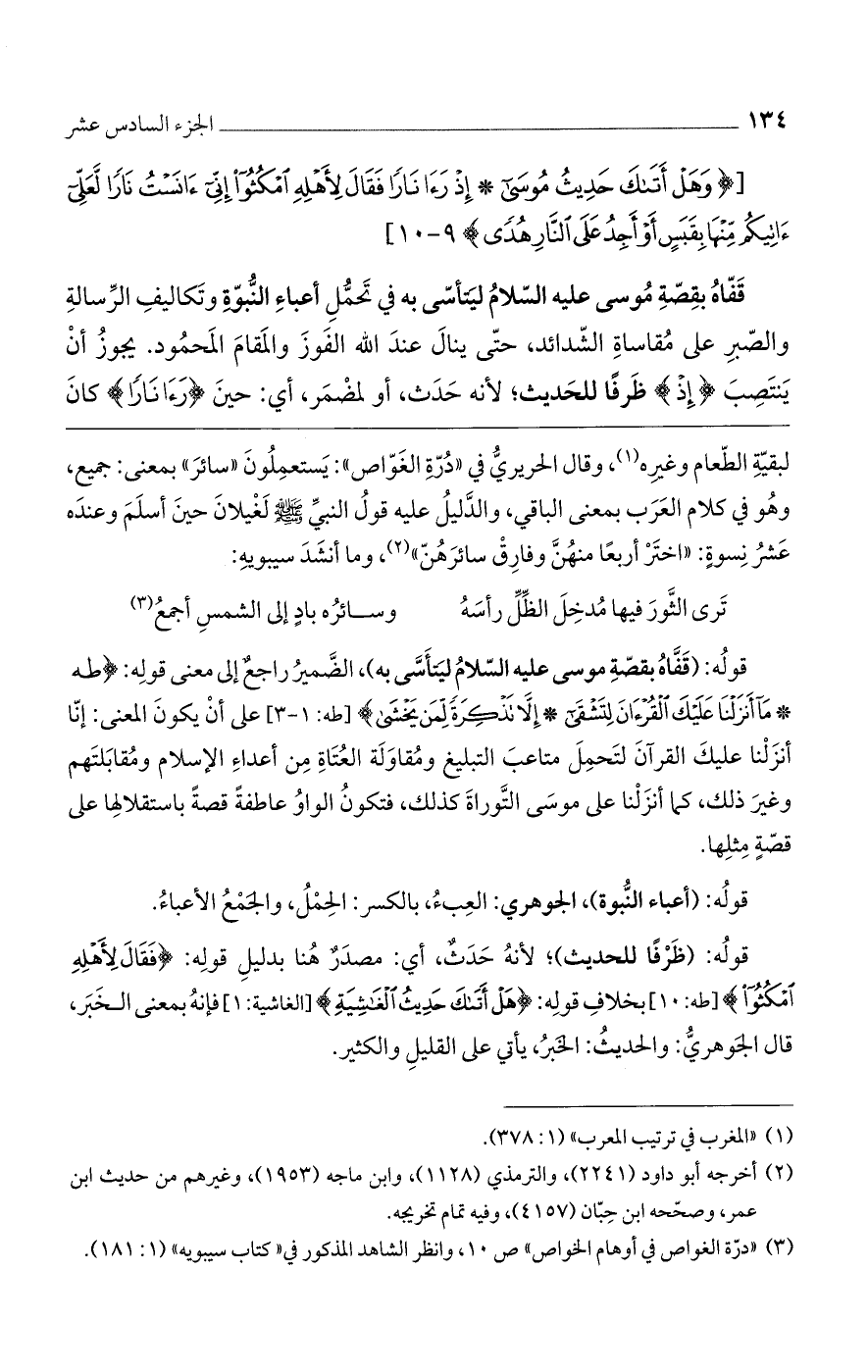 (وَهَلْ أَتاكَ حَدِيثُ مُوسى (9) إِذْ رَأى ناراً فَقالَ لِأَهْلِهِ امْكُثُوا إِنِّي آنَسْتُ ناراً لَعَلِّي آتِيكُمْ مِنْها بِقَبَسٍ أَوْ أَجِدُ عَلَى النَّارِ هُدىً) [طه: 9 - 10].