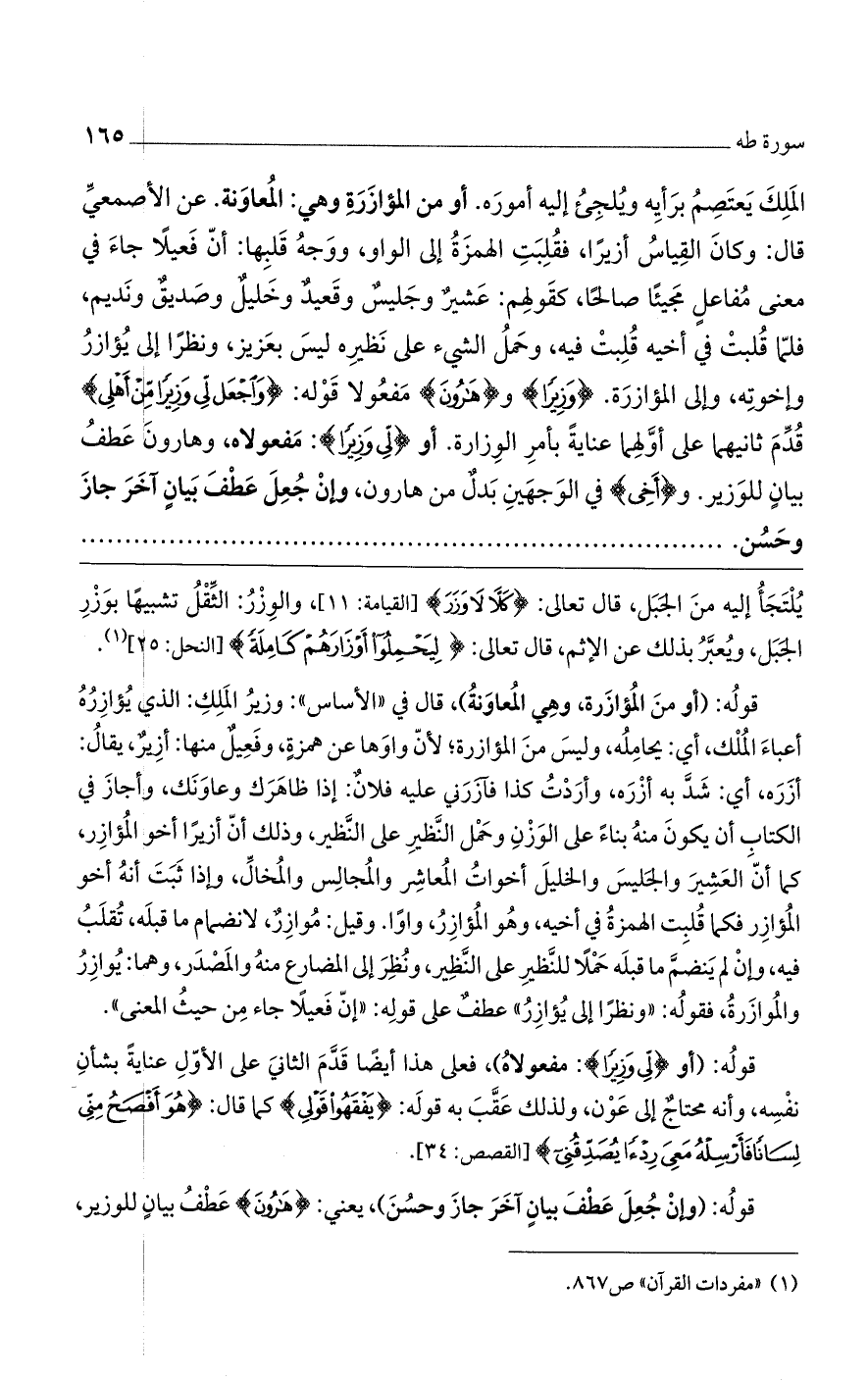 قوله: (أو (لِي وَزِيراً): مفعولاه)، فعلى هذا أيضاً قدم الثاني على الأول عناية بشأن نفسه، وأنه محتاجٌ إلى عون، ولذلك عقب به قوله: (يَفْقَهُوا قَوْلِي) كما قال: (هُوَ أَفْصَحُ مِنِّي لِسَاناً فَأَرْسِلْهُ مَعِي رِدْءاً يُصَدِّقُنِي) [القصص: 34].