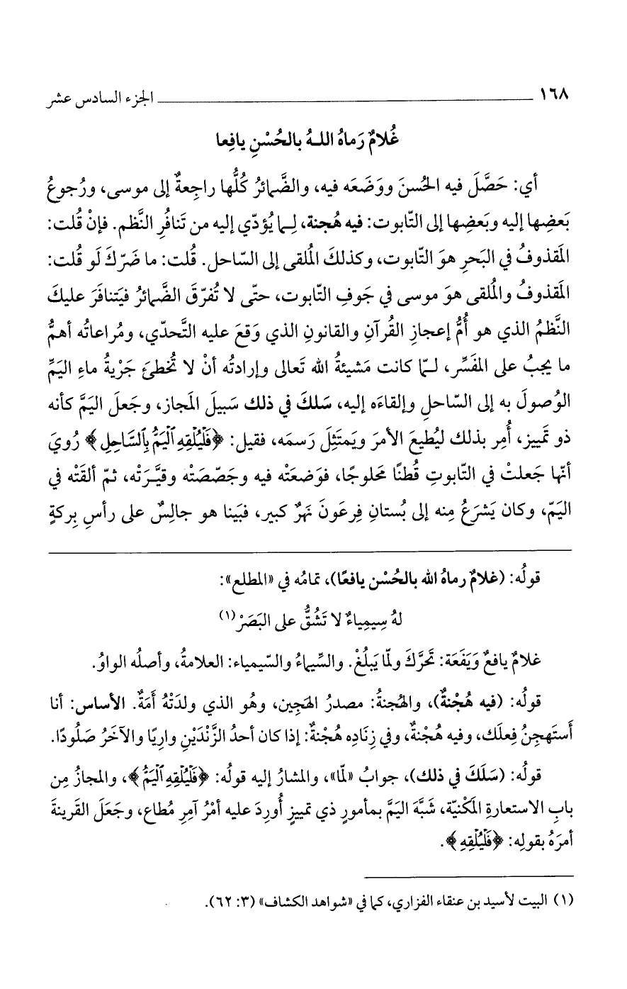قوله: (غلامٌ رماه الله بالحسن يافعا)، تمامه في "المطلع":