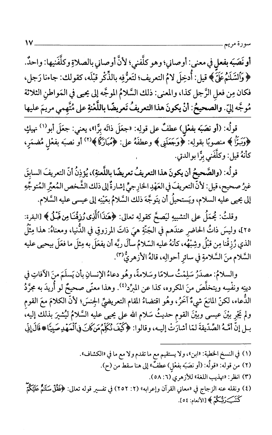 وقلت: يحمل على التشبيه ليصح كقوله تعالى: (هَذَا الَّذِي رُزِقْنَا مِن قَبْلُ) [البقرة: 25]، وليس ذات الحاضر عندهم في الجنة هي ذات المرزوق في الدنيا، ومعناه: هذا مثل الذي رزقنا من قبل وشبهه، كأنه عليه السلام سأل ربه أن يفعل به مثل ما فعل بيحيى عليه السلام من السلامة في سائر أحواله، قاله الأزهري.