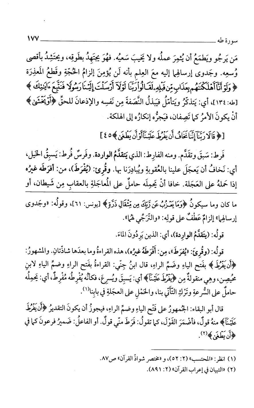 (قالا رَبَّنا إِنَّنا نَخافُ أَنْ يَفْرُطَ عَلَيْنا أَوْ أَنْ يَطْغى) [طه: 45].