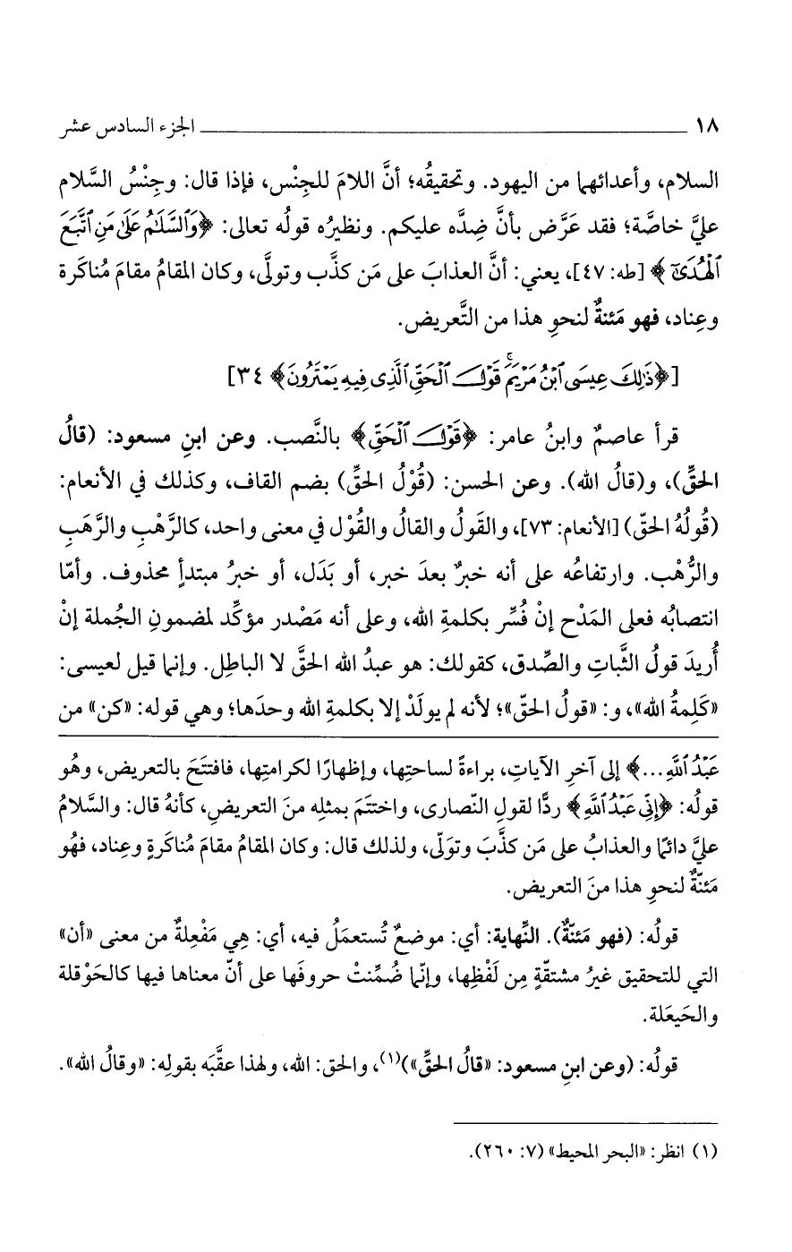 (ذلِكَ عِيسَى ابْنُ مَرْيَمَ قَوْلَ الْحَقِّ الَّذِي فِيهِ يَمْتَرُونَ) [مريم: 34].