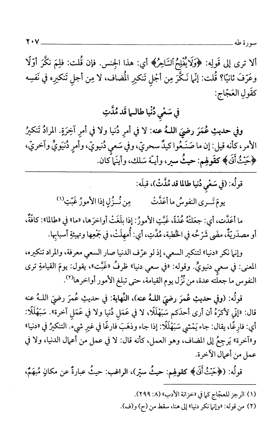 وفي حديث عمر رضى الله عنه «لا في أمر دنيا ولا في أمر آخرة. المراد تنكير الأمر، كأنه قيل: إن ما صنعوا كيد سحري. وفي سعى دنيوى. وأمر دنيوى وآخري (حَيْثُ أَتى) كقولهم: حيث سير، وأية سلك، وأينما كان.