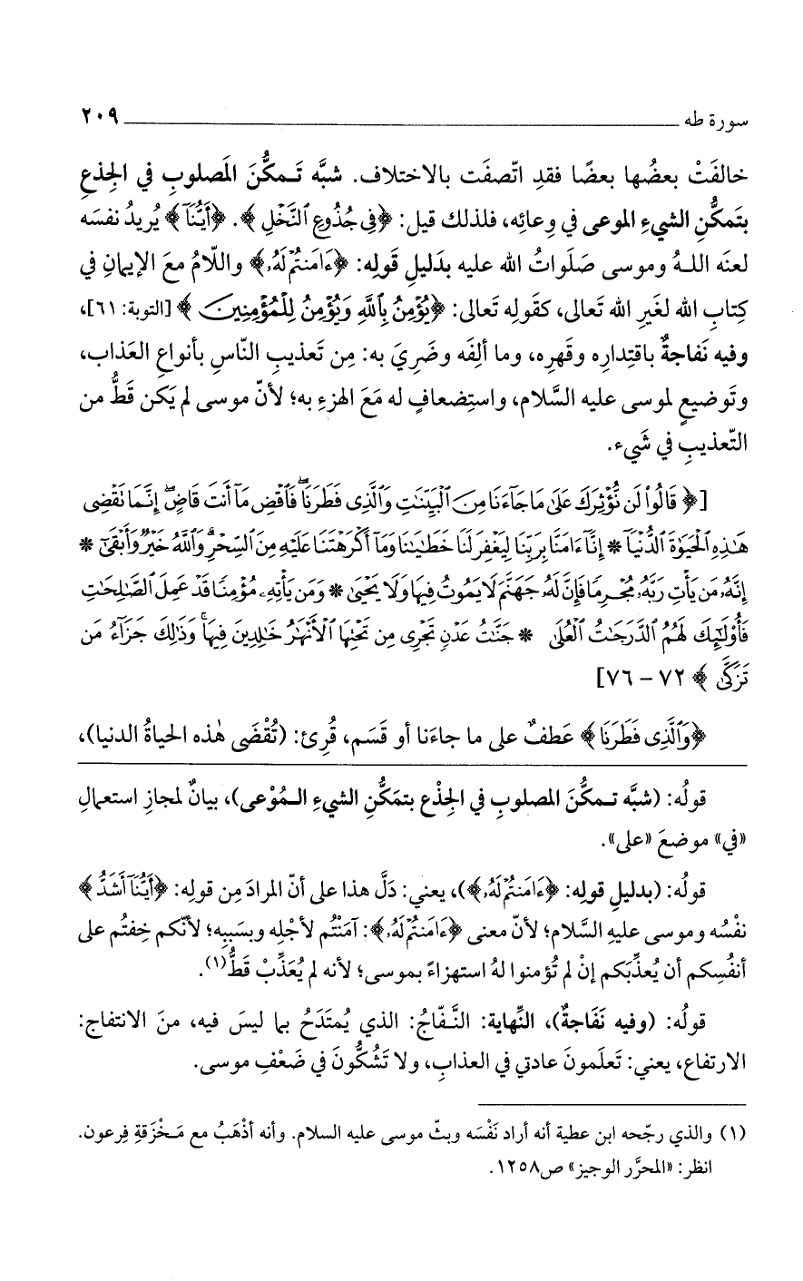 (قالُوا لَنْ نُؤْثِرَكَ عَلى ما جاءَنا مِنَ الْبَيِّناتِ وَالَّذِي فَطَرَنا فَاقْضِ ما أَنْتَ قاضٍ إِنَّما تَقْضِي هذِهِ الْحَياةَ الدُّنْيا (72) إِنَّا آمَنَّا بِرَبِّنا لِيَغْفِرَ لَنا خَطايانا وَما أَكْرَهْتَنا عَلَيْهِ مِنَ السِّحْرِ وَاللَّهُ خَيْرٌ وَأَبْقى (73) إِنَّهُ مَنْ يَاتِ رَبَّهُ مُجْرِماً فَإِنَّ لَهُ جَهَنَّمَ لا يَمُوتُ فِيها وَلا يَحْيى (74) وَمَنْ يَاتِهِ مُؤْمِناً قَدْ عَمِلَ الصَّالِحاتِ فَأُولئِكَ لَهُمُ الدَّرَجاتُ الْعُلى (75) جَنَّاتُ عَدْنٍ تَجْرِي مِنْ تَحْتِهَا الْأَنْهارُ خالِدِينَ فِيها وَذلِكَ جَزاءُ مَنْ تَزَكَّى) [طه: 72 - 76]