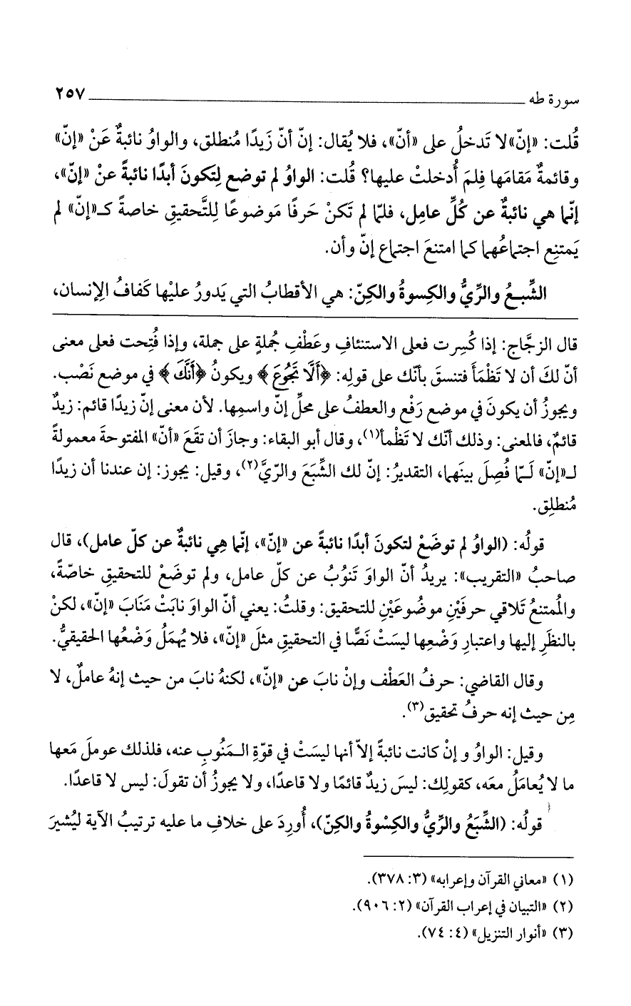 قوله: (الواو لم توضع لتكون أبداً نائبة عن "إنّ" إنما هي نائبة عن كل عامل)، قال صاحبُ "التقريب": يريدُ أن الواو تنوبُ عن كل عامل، ولم توضع للتحقيق خاصةً، والممتنعُ تلاقي حرفين موضوعين للتحقيق: وقلتُ: يعني أن الواو نابت مناب "إنّ"، لكن بالنظر إليها واعتبار وضعها ليست نصاً في التحقيق مثل "إنّ"، فلا يُهملُ وضعُها الحقيقيُّ.