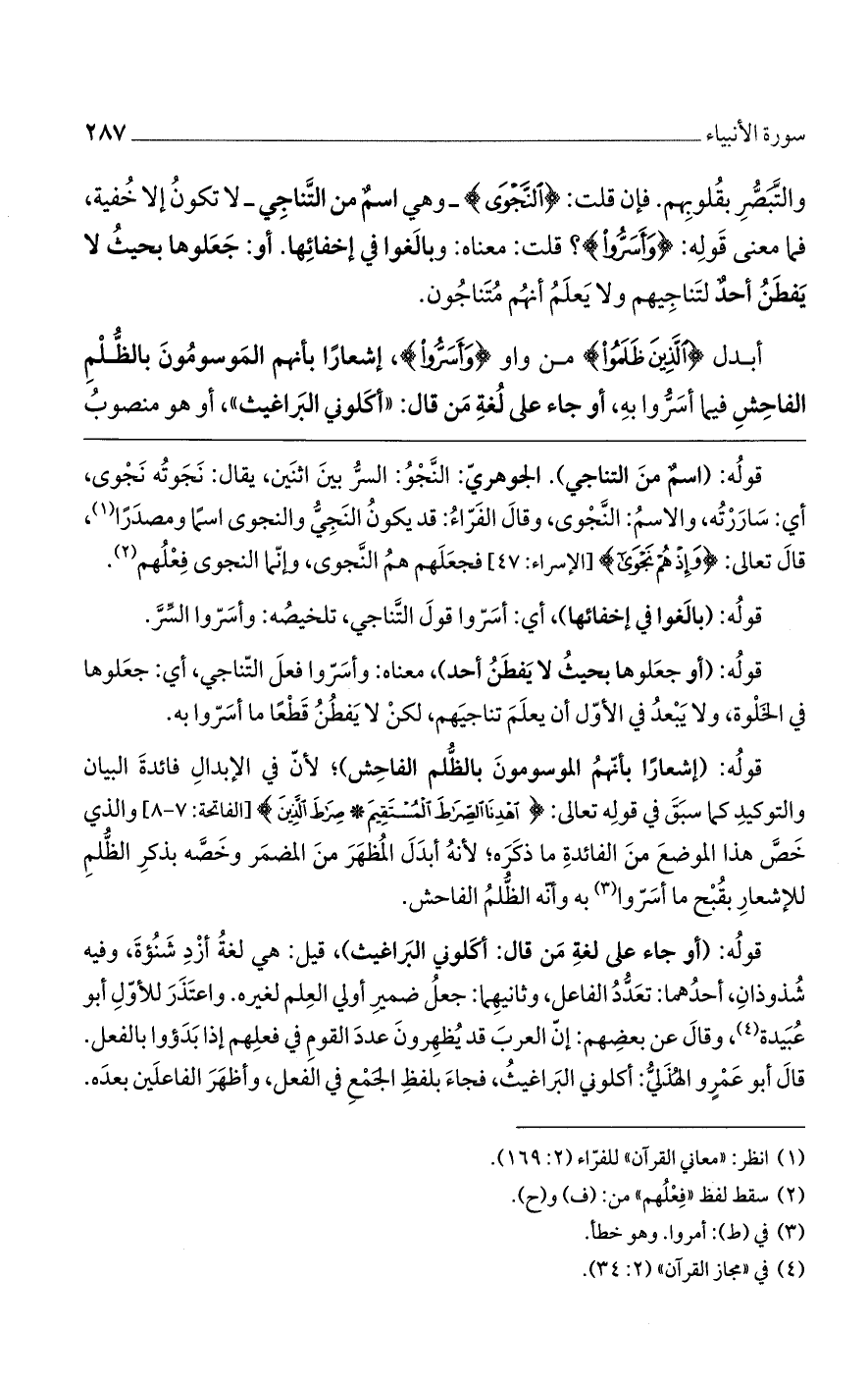 أبدل (الَّذِينَ ظَلَمُوا) من واو (وأسرّوا)، إشعارا بأنهم الموسومون بالظلم الفاحش فيما أسرّوا به. أو جاء على لغة من قال «أكلونى البراغيث» أو هو منصوب