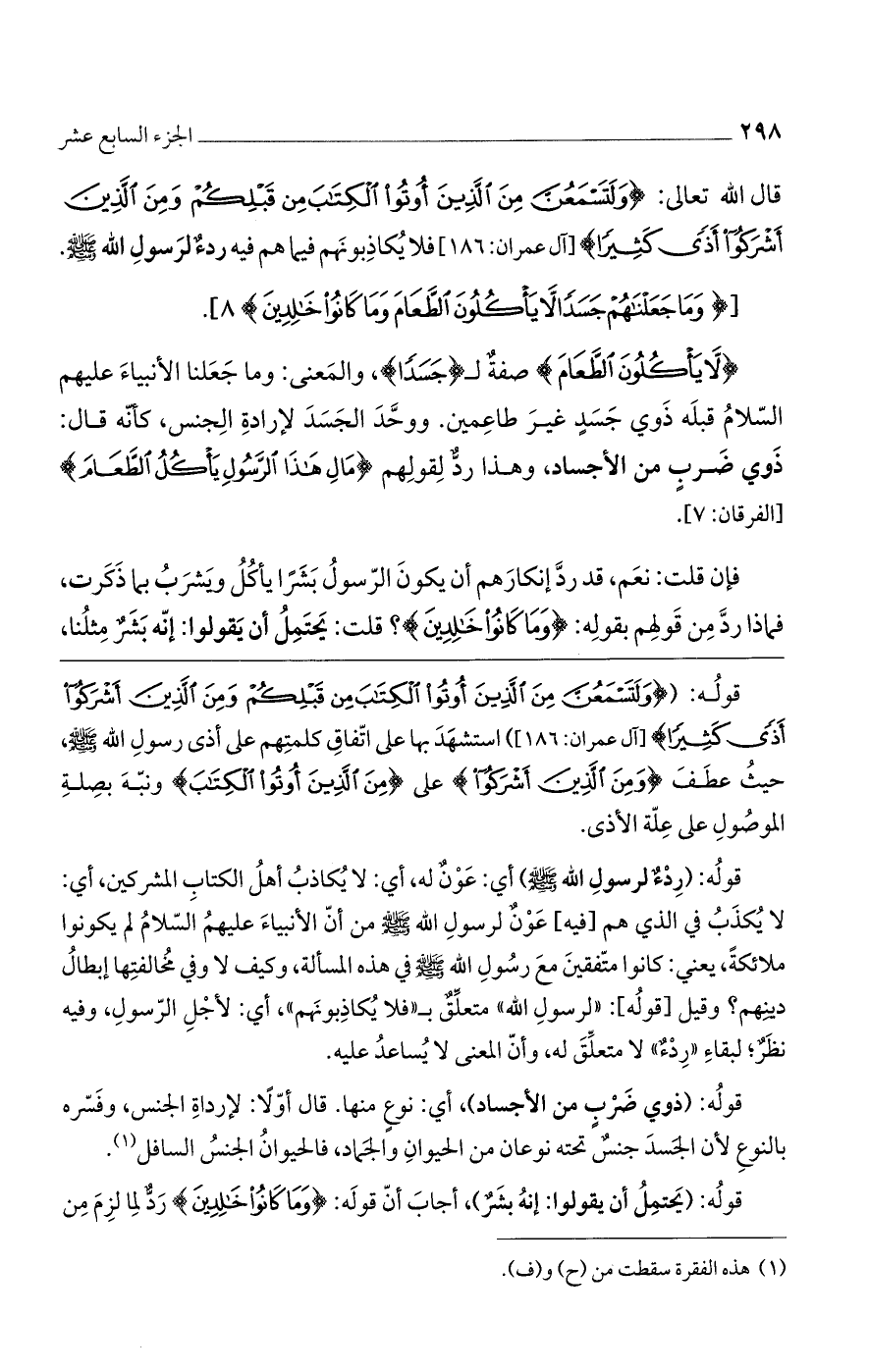 قوله: (يحتمل أن يقولوا: إنهُ بشرٌ)، أجاب أن قوله: (وَمَا كَانُوا خَالِدِينَ) ردٌّ لما لزم من