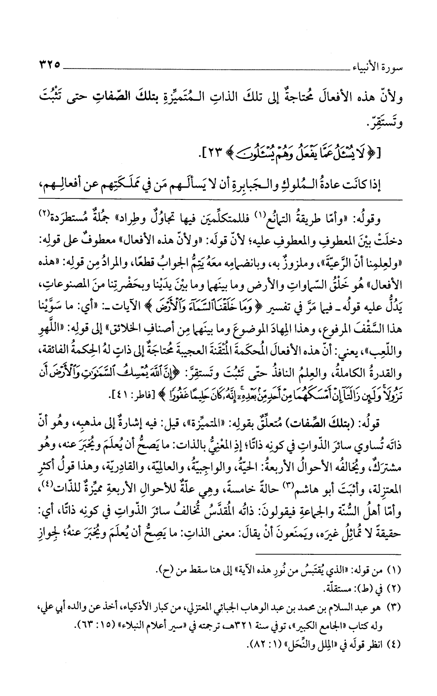 ولأنّ هذه الأفعال محتاجة إلى تلك الذات المتميزة بتلك الصفات حتى تثبت وتستقرّ.