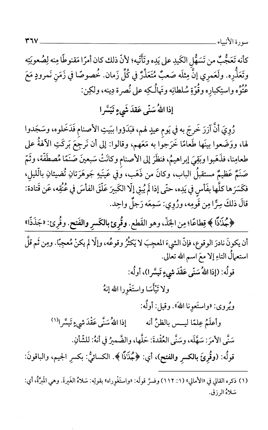 (جُذاذاً) قطاعا، من الجذ وهو القطع. وقرئ بالكسر والفتح. وقرئ: "جذذا".
