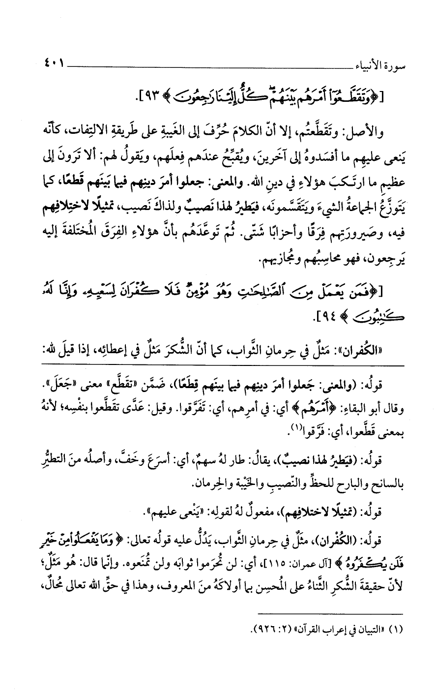 قوله: (والمعنى: جعلوا أمر دينهم فيما بينهم قطعاً)، ضمن "تقطع" معنى "جعل". وقال أبو البقاء: (أَمْرِهِمْ) أي: في أمرهم، أي: تفرقوا. وقيل: عدى تقطعوا بنفسه؛ لأنه بمعنى قطعوا، أي: فرقوا.