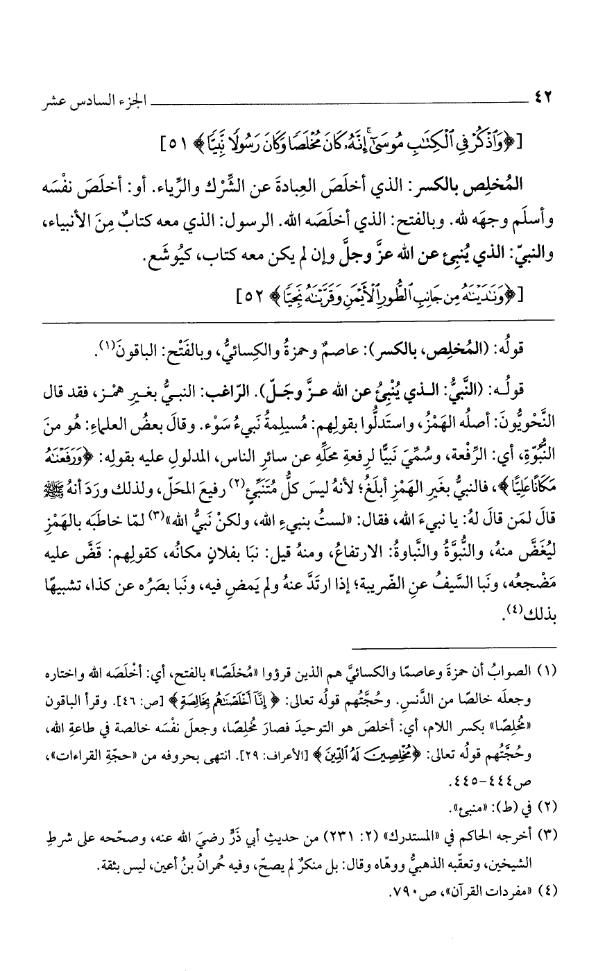 (وَاذْكُرْ فِي الْكِتابِ مُوسى إِنَّهُ كانَ مُخْلَصاً وَكانَ رَسُولاً نَبِيًّا) [مريم: 51].
