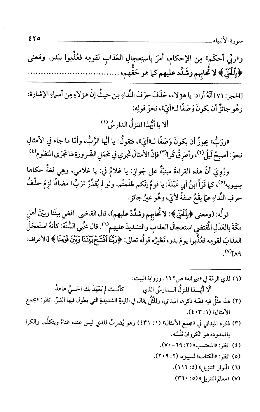 [الحجر: 71] أنه أراد: يا هؤلاء، حذف حرف النداء من حيثُ إن هؤلاء من أسماء الإشارة، وهو جائزٌ أن يكون وصفاً لـ"أي"، نحو قوله: