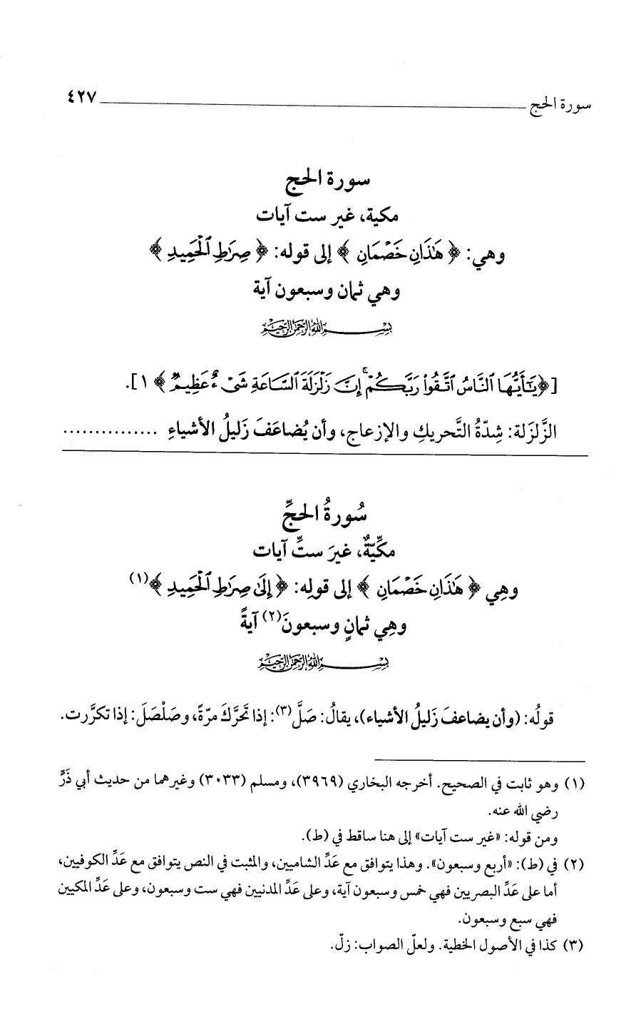 وهي (هَذَانِ خَصْمَانِ) إلى قوله: (إِلَى صِرَاطِ الْحَمِيدِ)
