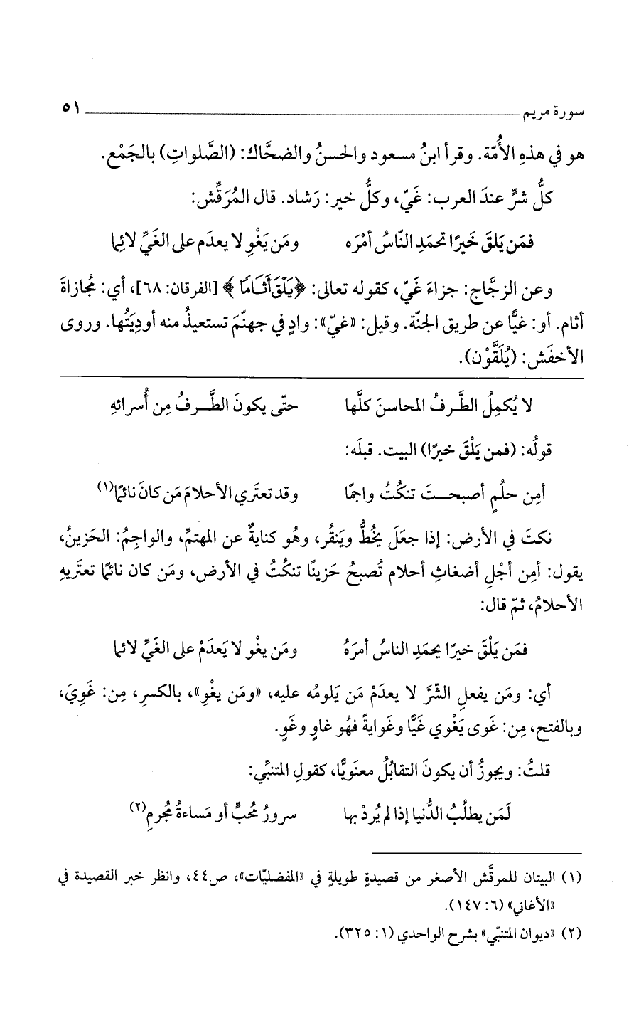 وعن الزجاج: جزاء غىّ، كقوله تعالى: (يَلْقَ أَثاماً) [الفرقان: 68]، أى: مجازاة أثام. أو: غيَّا عن طريق الجنة. وقيل: «غىّ» واد في جهنم تستعيذ منه أوديتها. وروي الأخفش: (يُلْقُونَ).