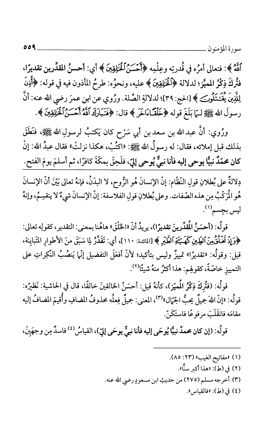 وروي أنّ عبد الله بن سعد بن أبى سرح كان يكتب لرسول الله صلى الله عليه وسلم، فنطق بذلك قبل إملائه، فقال له رسول الله صلى الله عليه وسلم «اكتب هكذا نزلت» فقال عبد الله: إن كان محمد نبيا يوحى إليه فأنا نبىّ يوحى إلىّ، فلحق بمكة كافرا، ثم أسلم يوم الفتح.