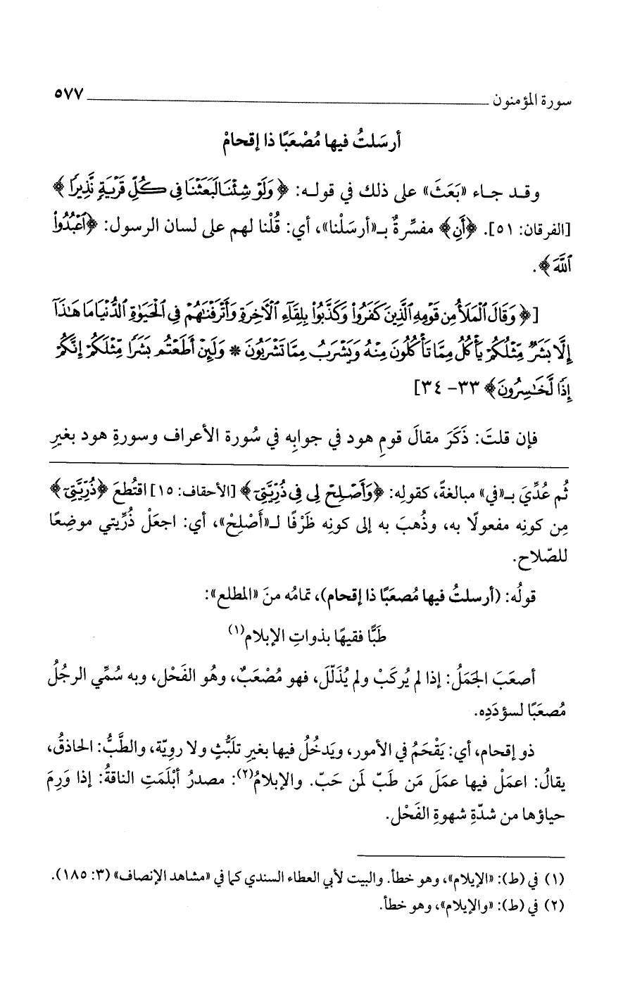 قوله: (أرسلت فيها مصعباً ذا إقحام)، تمامه من "المطلع":