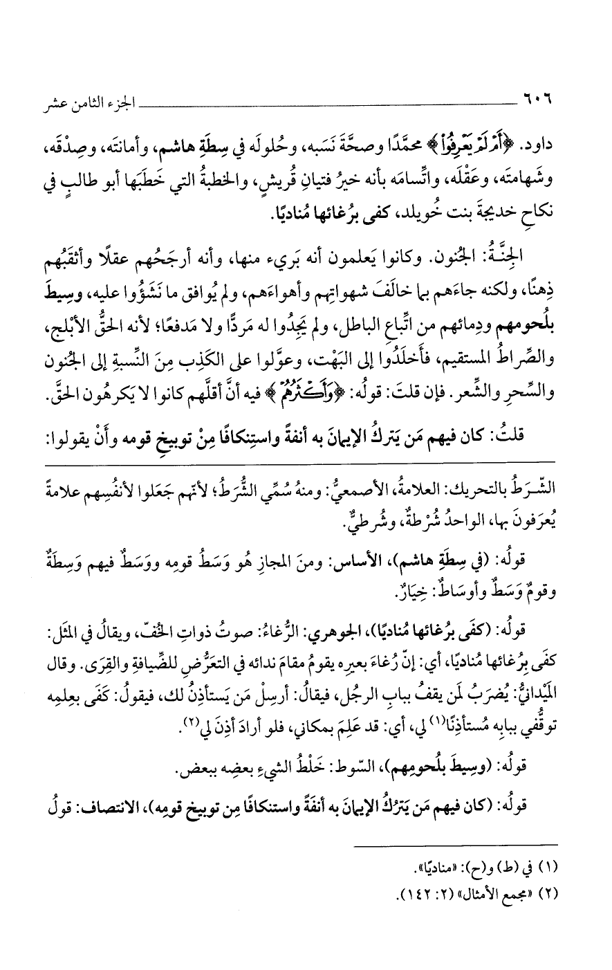 داود (أَمْ لَمْ يَعْرِفُوا) محمدا وصحة نسبه، وحلوله في سطة هاشم، وأمانته، وصدقه، وشهامته، وعقله، واتسامه بأنه خير فتيان قريش، والخطبة التي خطبها أبو طالب في نكاح خديجة بنت خويلد، كفى برغائها مناديا.
