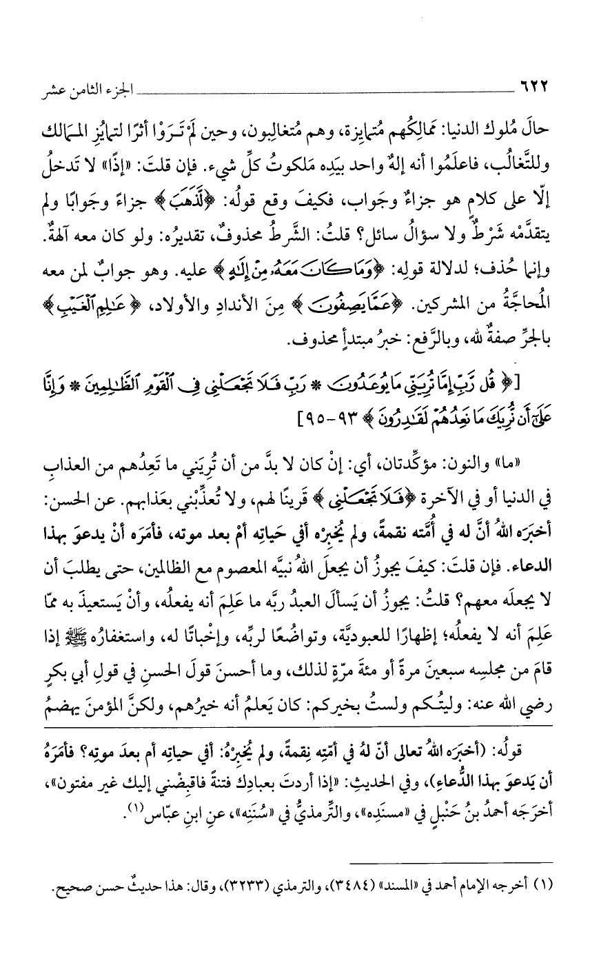 ] (قُلْ رَبِّ إِمَّا تُرِيَنِّي ما يُوعَدُونَ* رَبِّ فَلا تَجْعَلْنِي فِي الْقَوْمِ الظَّالِمِينَ* وَإِنَّا عَلى أَنْ نُرِيَكَ ما نَعِدُهُمْ لَقادِرُونَ) [