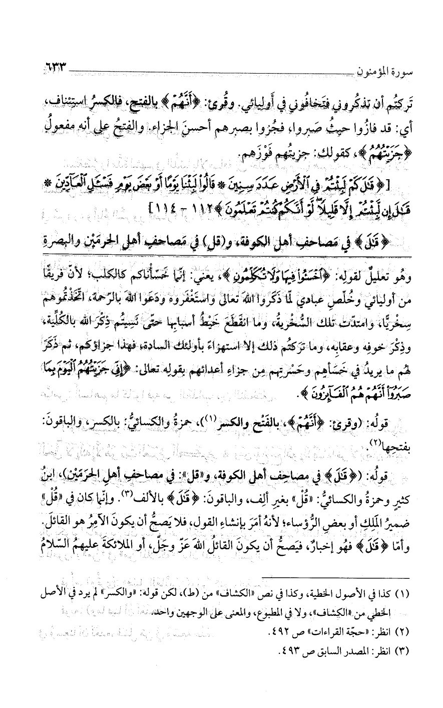 قوله: (وقرئ: (أَنَّهُمْ)، بالفتح والكسر)، حمزة والكسائي: بالكسر، والباقون: بفتحها.