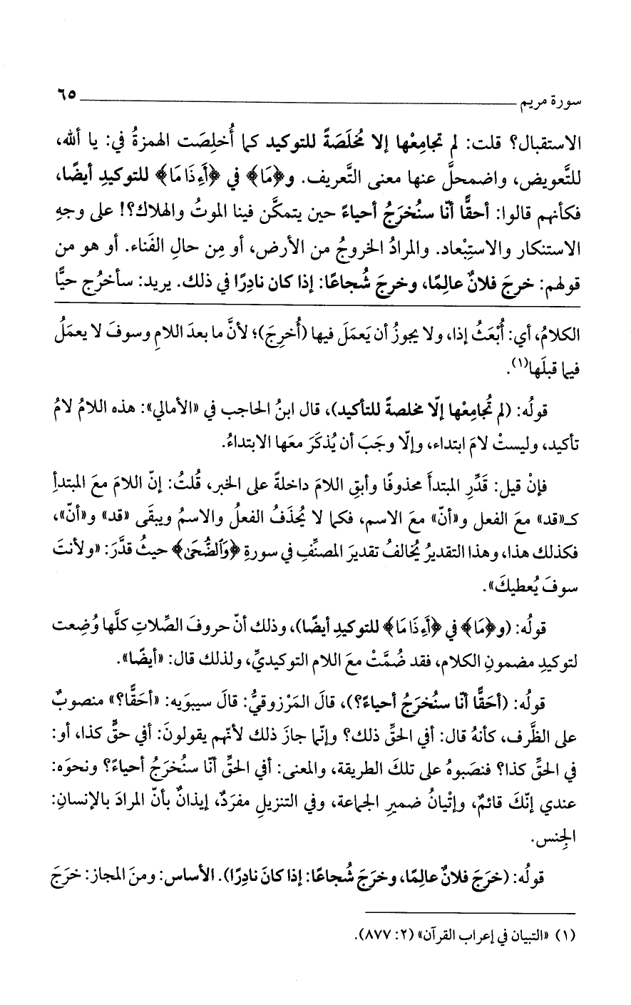 الاستقبال؟ قلت: لم تجامعها إلا مخلصة للتوكيد كما أخلصت الهمزة في يا الله للتعويض واضمحل عنها معنى التعريف. و «ما» في (أءِذا ما) للتوكيد أيضا، فكأنهم قالوا: أحقا أنا سنُخرج أحياءً حين يتمكن فينا الموت والهلاك؟ ! على وجه الاستنكار والاستبعاد. والمراد الخروج من الأرض، أو من حال الفناء. أو هو من قولهم: خرج فلان عالما، وخرج شجاعا: إذا كان نادرا في ذلك، يريد: سأخرج حيا