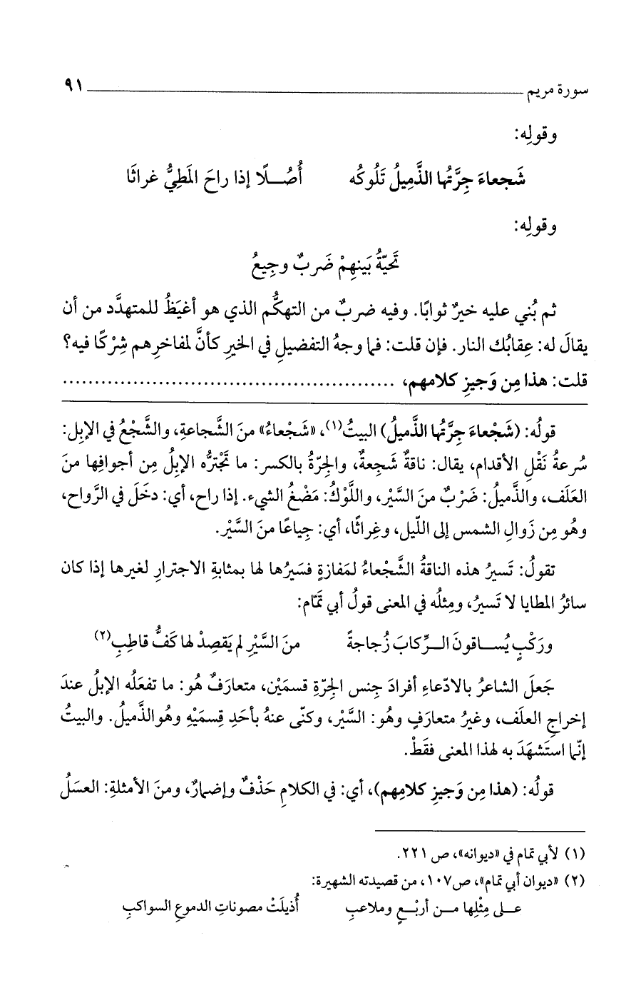 تقولُ: تسير هذه الناقة الشجعاء لمفازة فسيرها لها بمثابة الاجترار لغيرها إذا كان سائرُ المطايا لا تسيرُ، ومثله في المعنى قول أبي تمام: