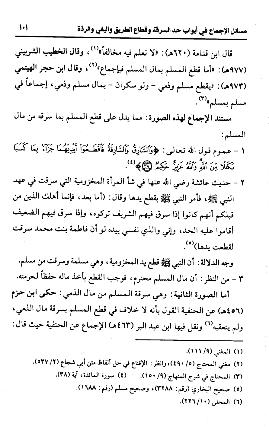 • مستند الإجماع لهذه الصورة: مما يدل على قطع المسلم بما سرقه من مال المسلم: