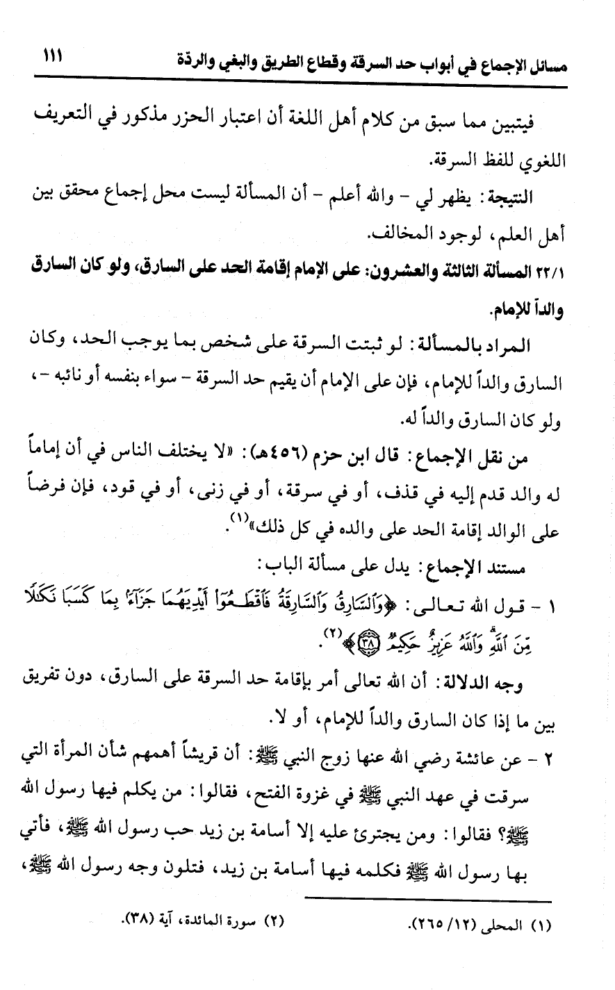 [23/ 1] المسألة الثالثة والعشرون: على الإمام إقامة الحد على السارق، ولو كان السارق والدًا للإمام.