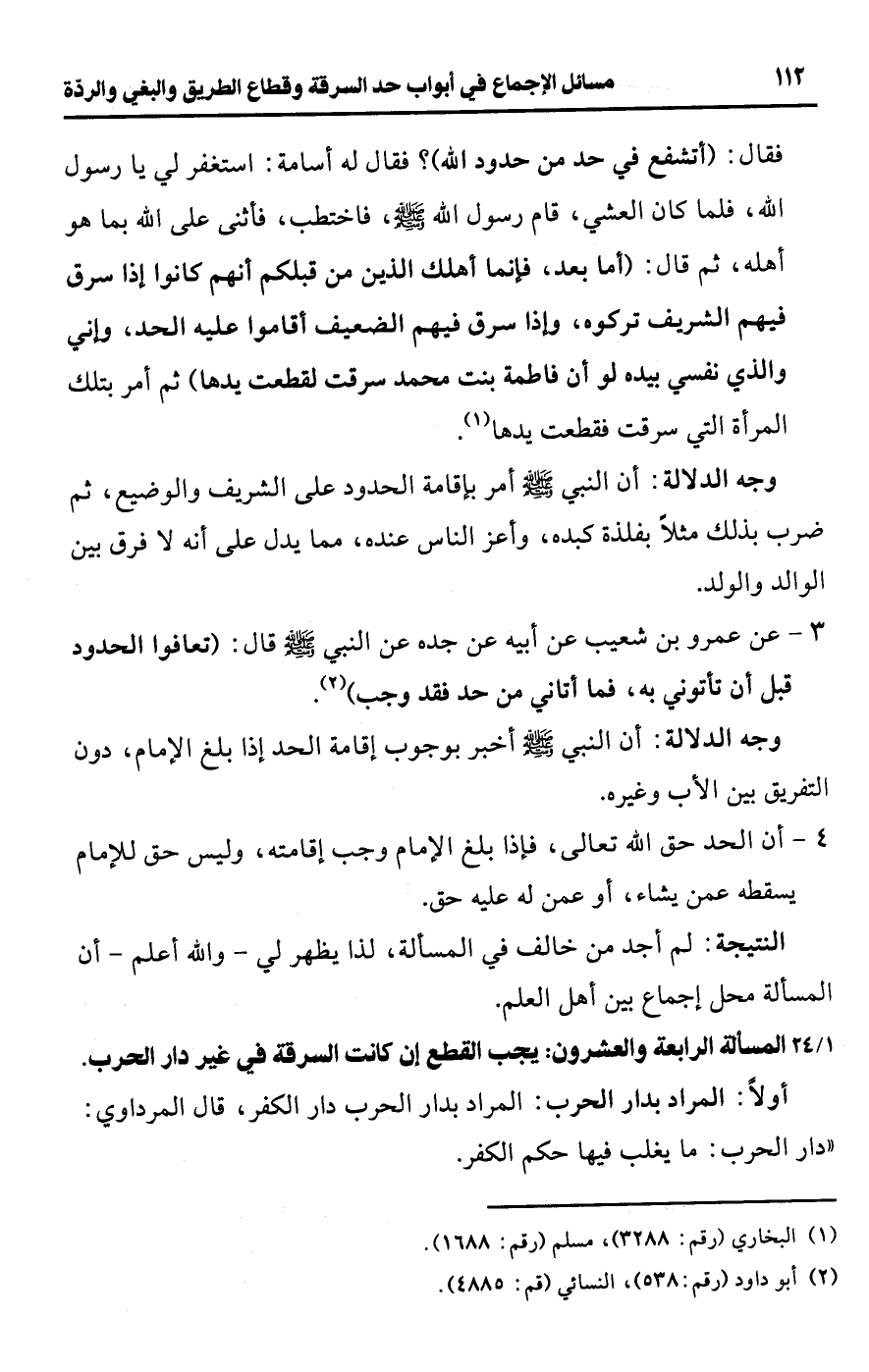 [24/ 1] المسألة الرابعة والعشرون: يجب القطع إن كانت السرقة في غير دار الحرب.