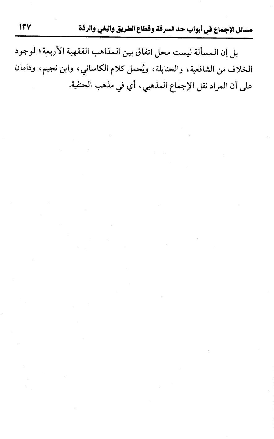 بل إن المسألة ليست محل اتفاق بين المذاهب الفقهية الأربعة؛ لوجود الخلاف من الشافعية، والحنابلة، ويُحمل كلام الكاساني، وابن نجيم، ودامان على أن المراد نقل الإجماع المذهبي، أي في مذهب الحنفية.