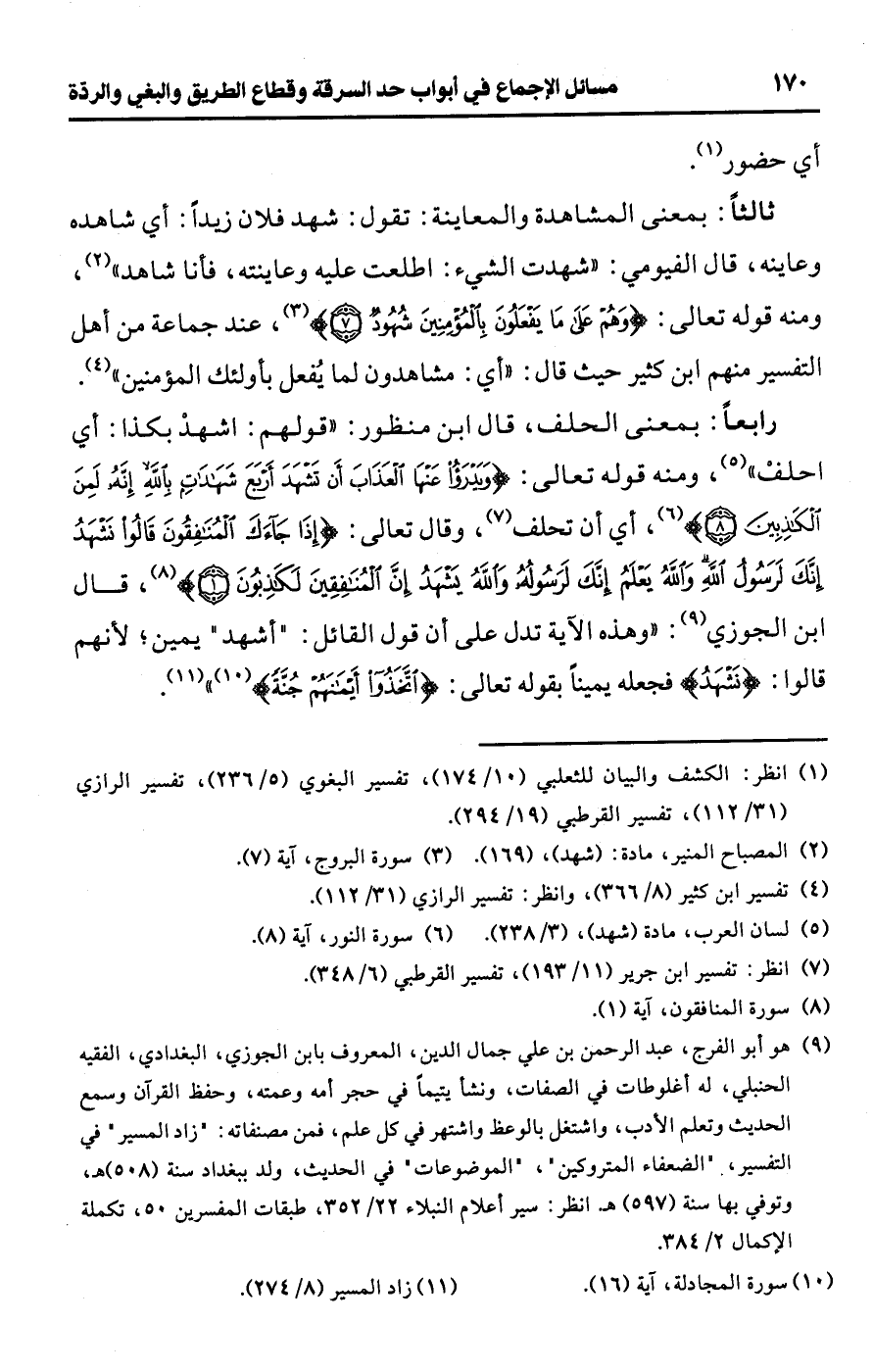 (¬2) المصباح المنير، مادة: (شهد)، (169).
