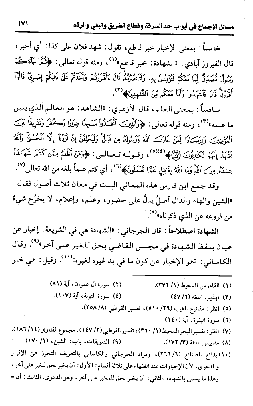 (¬9) التعريفات، باب: الشين، (1/ 170).