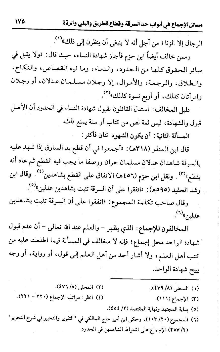 (¬6) المجموع (20/ 103)، وحكى ابن أمير حاج المالكي في "التقرير والتحبير في شرح التحرير" (2/ 257) الإجماع على اشتراط الشاهدين في الحدود.