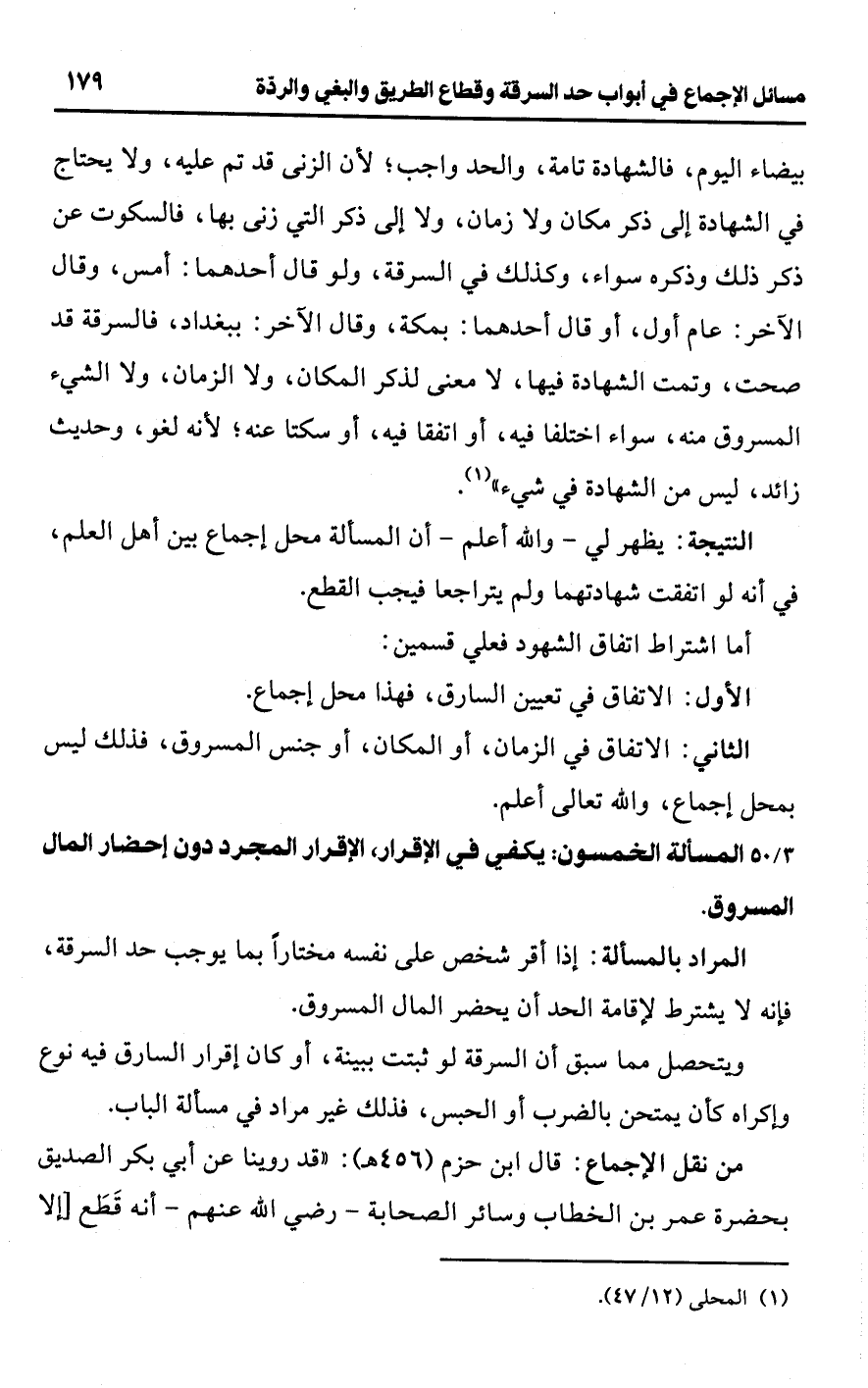 [50/ 3] المسألة الخمسون: يكفي في الإقرار، الإقرار المجرد دون إحضار المال المسروق.