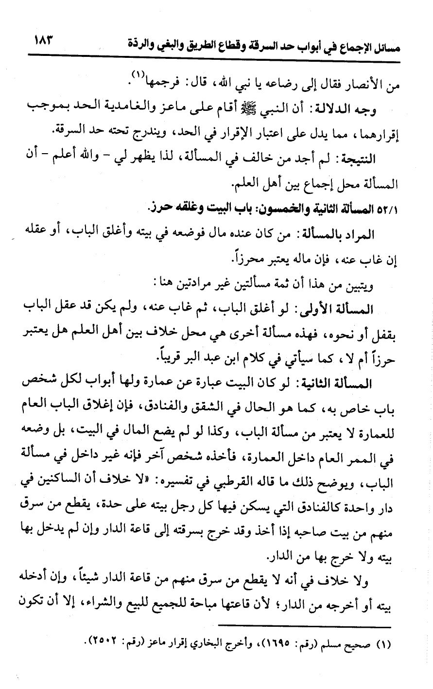 [52/ 1] المسألة الثانية والخمسون: باب البيت وغلقه حرز.