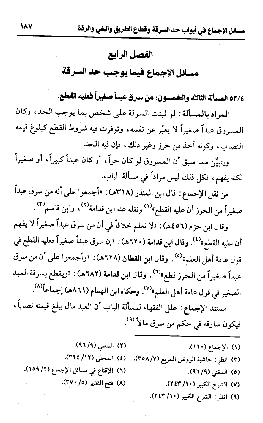 الفصل الرابع مسائل الإجماع فيما يوجب حد السرقة