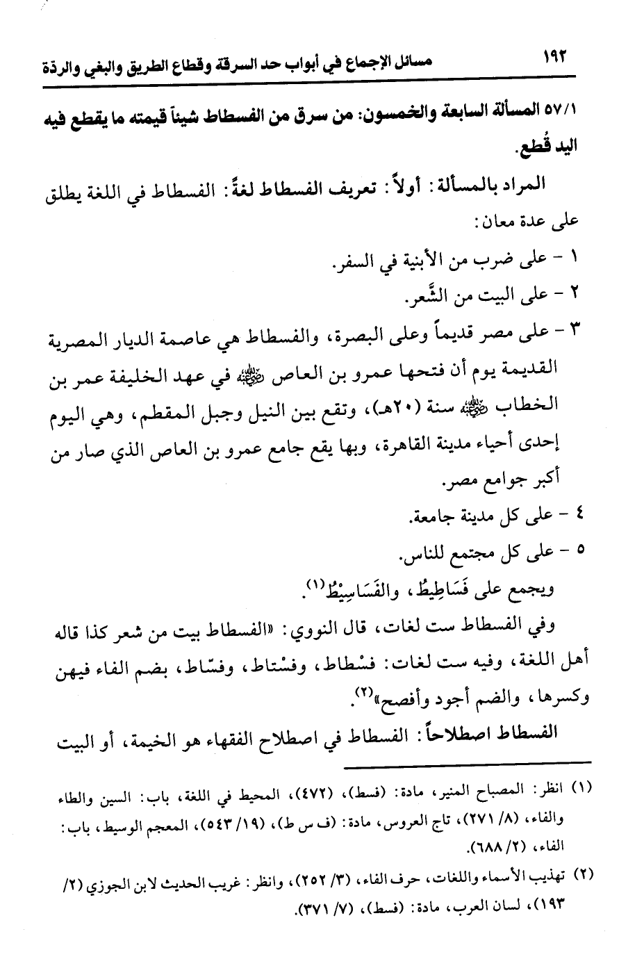 (¬1) انظر: المصباح المنير، مادة: (فسط)، (472)، المحيط في اللغة، باب: السين والطاء والفاء، (8/ 271)، تاج العروس، مادة: (ف س ط)، (19/ 543)، المعجم الوسيط، باب: الفاء، (2/ 688).